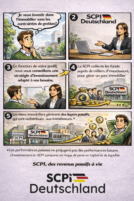 Les Sociétés Civiles de Placement Immobilier (SCPI) vous permettent d’investir dans un parc immobilier diversifié. En achetant des parts de SCPI, vous devenez propriétaire d’une fraction des biens immobiliers (bureaux, commerces, logements, etc.) gérés par la société. En contrepartie, vous percevez une part proportionnelle des revenus locatifs générés.